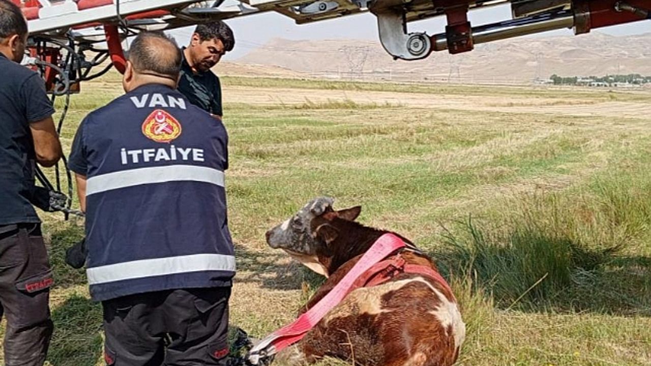 Van’ın Tuşba ilçesinde kuyuya düşen inek, itfaiye ekipleri tarafından kurtarıldı.