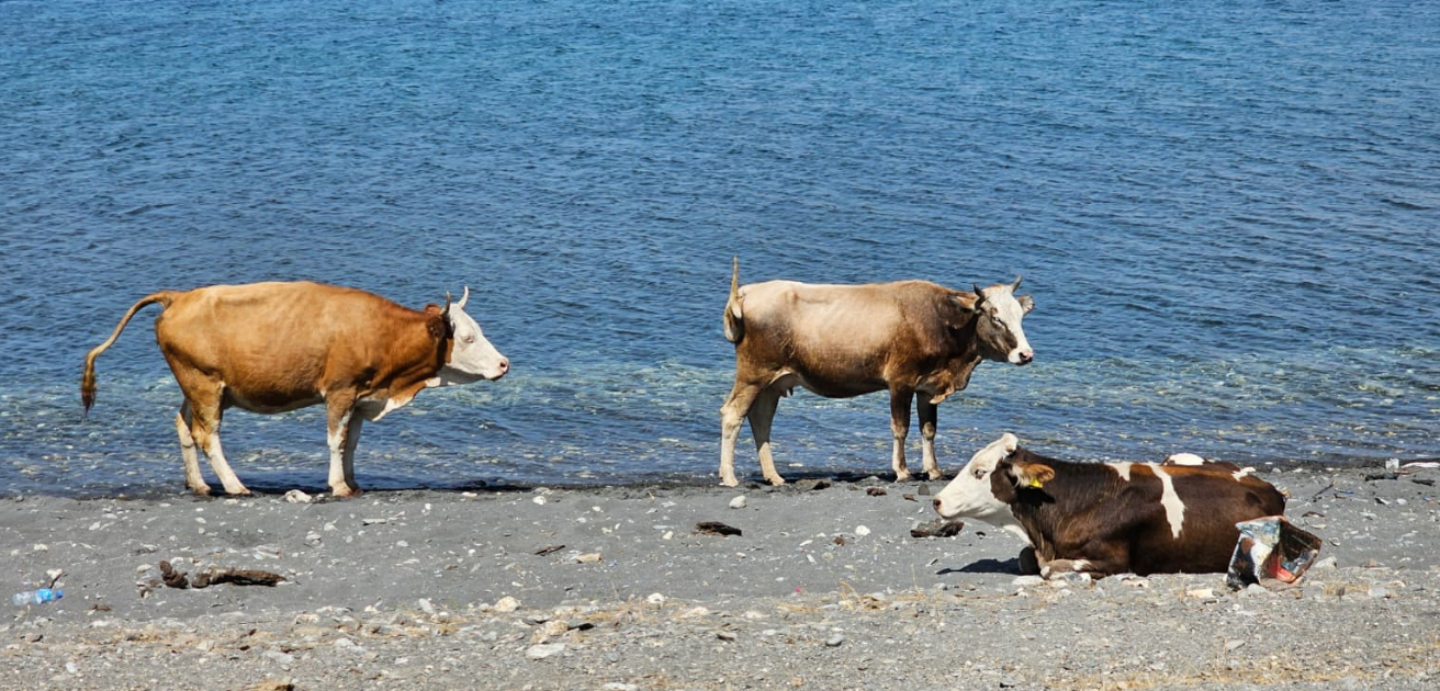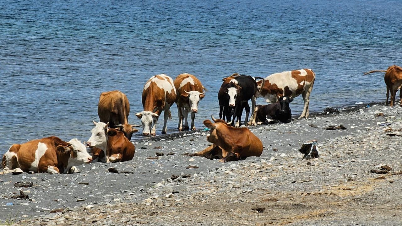 Van Gölü sahillerinde yaz aylarının kavurucu sıcakları hem insanları hem de hayvanları bunaltıyor. Serinlemek için göl kıyılarını tercih eden sadece bölge halkı değil. Zaman zaman sürülerinden ayrılan inekler de kumsala iniyor, göl kıyısında dolaşıyor ya da serin sulara giriyor. Özellikle Adilcevaz ve Ahlat sahillerinde sık olmasa da görülen bu manzaralar, göl kenarında vakit geçirenlerin cep telefonlarına yansıyor.