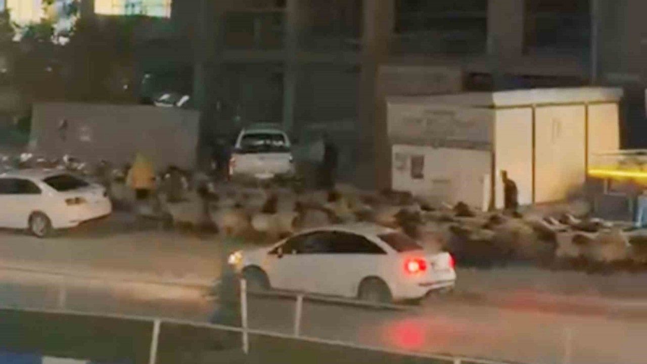 Hakkari’nin Yüksekova ilçesinin en işlek caddesinden koyun sürüsü geçtiği sırada ilginç görüntüler oluştu.