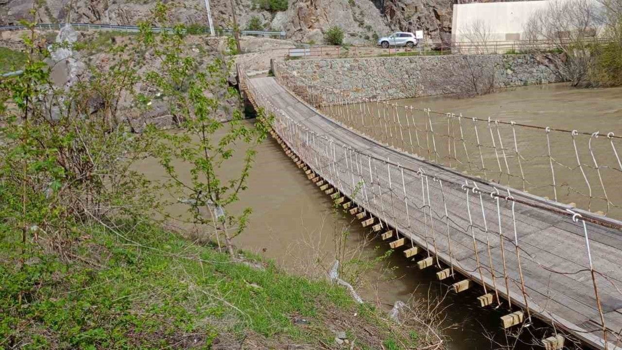 Erzurum’un İspir ilçesinde vatandaşların yoğun olarak kullandığı tarihi asma köprünün kopan halatının yapılmaması büyük bir tehlike oluşturuyor.