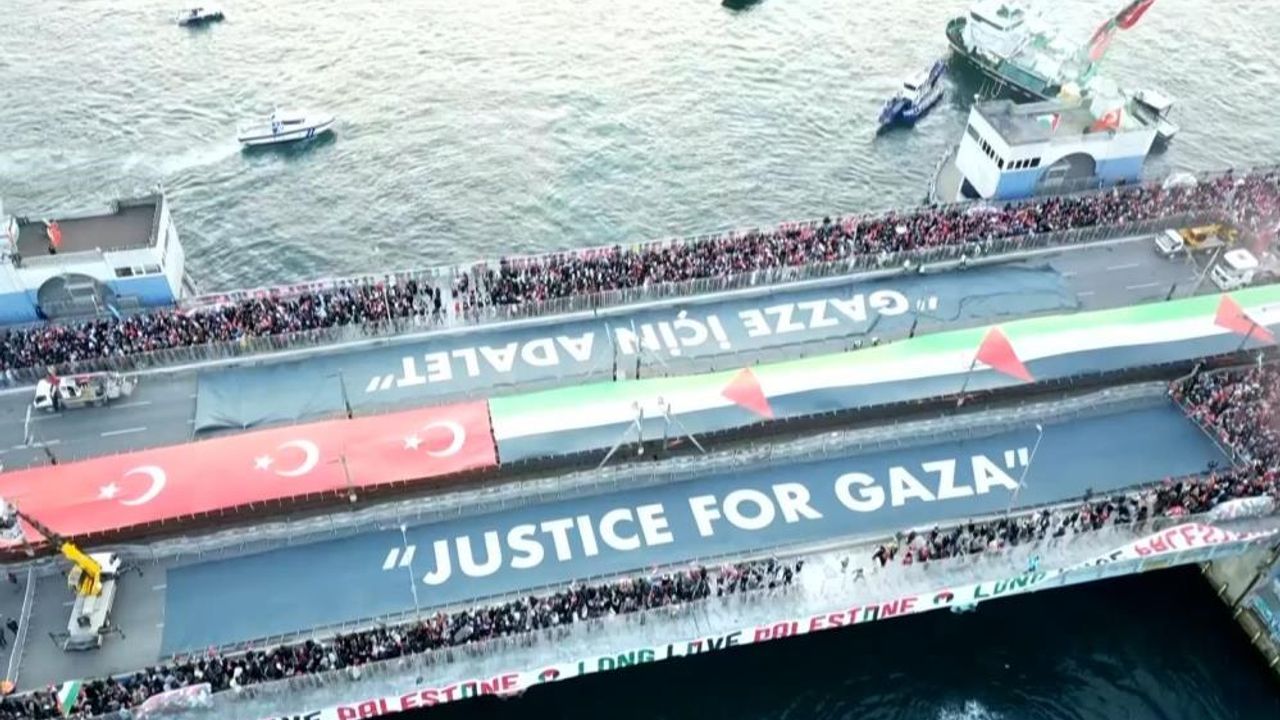 İnsanlık İttifakı ve Milli İrade Platformu tarafından "Sinmiyoruz, susmuyoruz Filistin'i unutmuyoruz" sloganıyla Galata Köprüsü'nde tarihi bir buluşma gerçekleştirildi. Yeni yılın ilk sabahında Galata Köprüsü'nde düzenlenen Filistin'e destek yürüyüşüne binlerce vatandaş katıldı. Ayasofya-i Kebir Camii Şerifi'nde kılınan sabah namazının ardından oluşan insan seli Galata Köprüsü'ne yürüdü. Vatandaşlar ellerindeki Türk ve Filistin bayrakları ve boyunlarına bağladıkları kefiyelerle geniş güvenlik önleminin alındığı köprüye geldi.