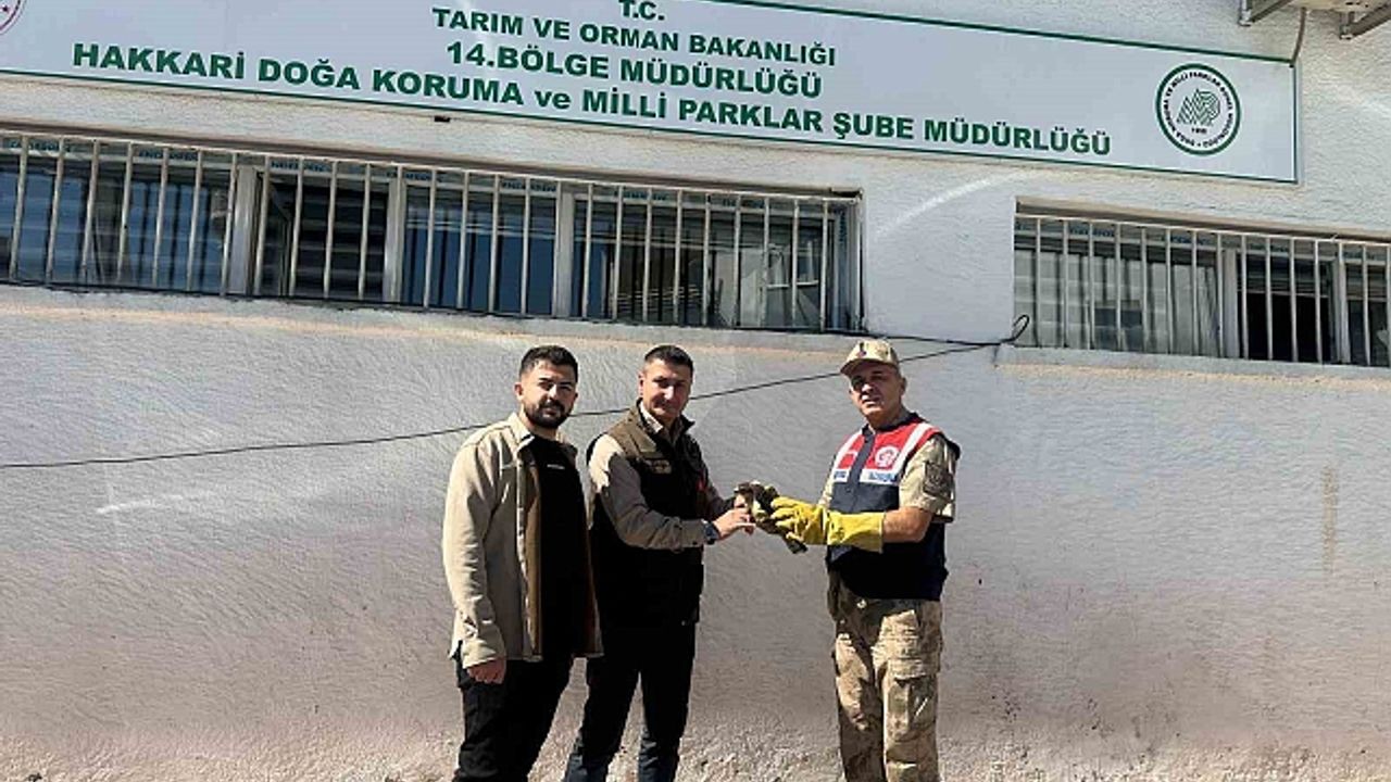 Hakkari İl Jandarma Komutanlığı ekipleri, icra edilen devriye faaliyeti esnasında arazide yaralı olarak buldukları doğan yavrusuna sahip çıktı.