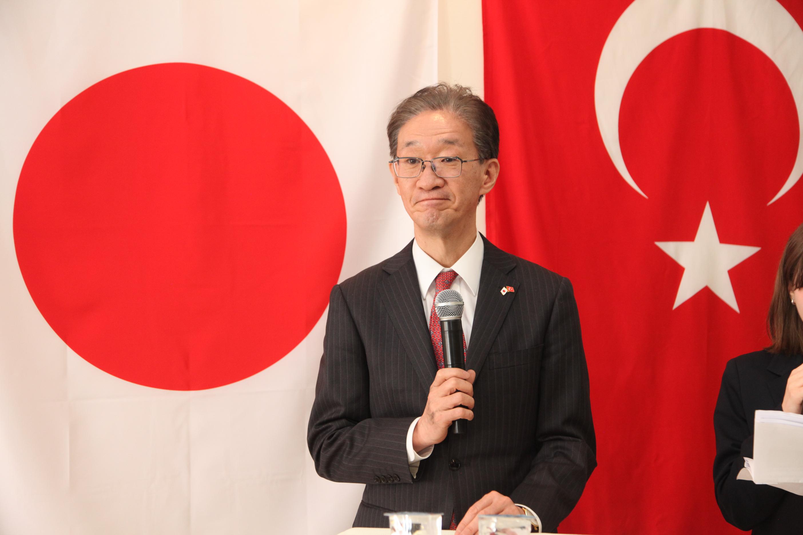 Program sonunda kadınlar tarafından hazırlanan ve üzerinde Türk-Japon bayraklarının bulunduğu tablo Büyükelçi Tamura’ya hediye edildi.