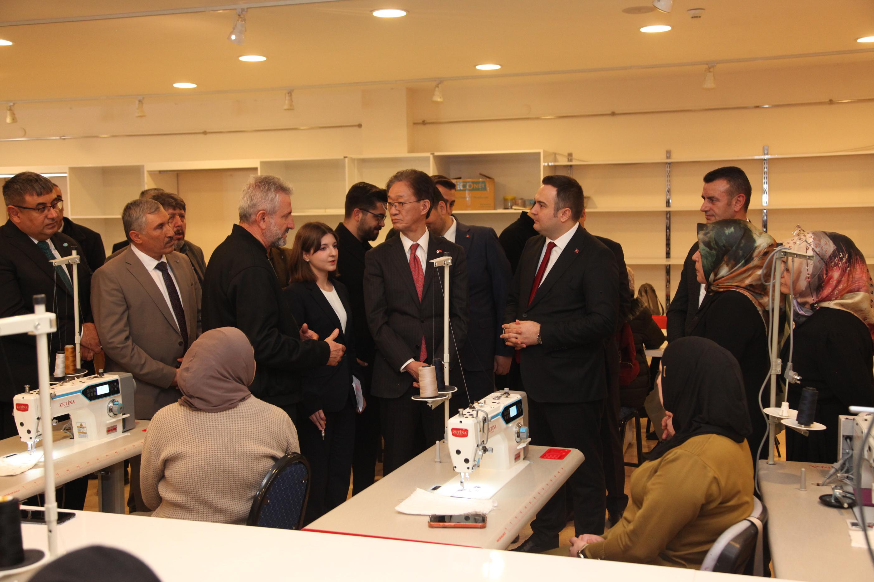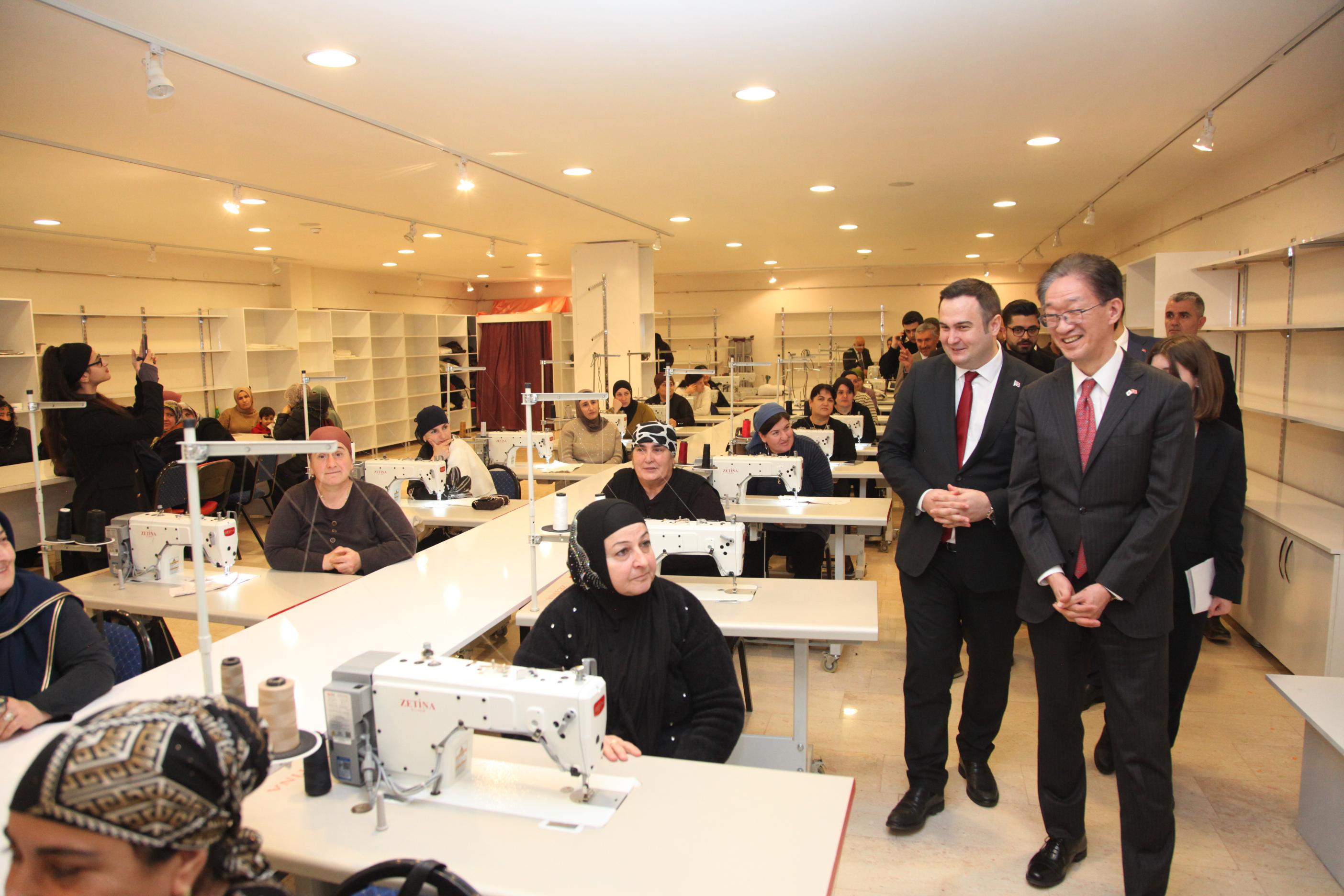 Konuşmaların ardından Büyükelçi Tamura merkezde eğitim alacak kadınlarla sohbet ederek çalışmaları yerinde inceledi.