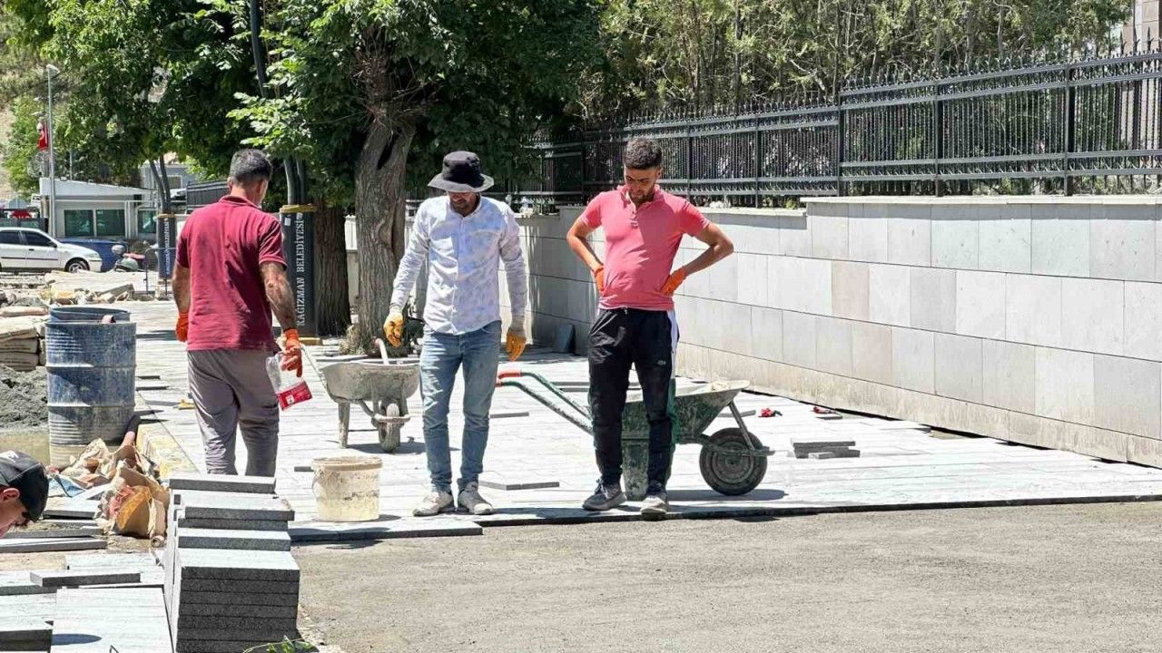 Kağızman belediyesine kayyum atanmasının ardından ilçe merkezinde kaldırım çalışmaları başladı.