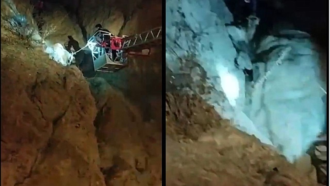Hakkari'nin tarihi Mir Kalesi'ndeki kayalıklarda mahsur kalan keçi itfaiye ekiplerinin uzun uğraşları sonucu kurtarıldı.