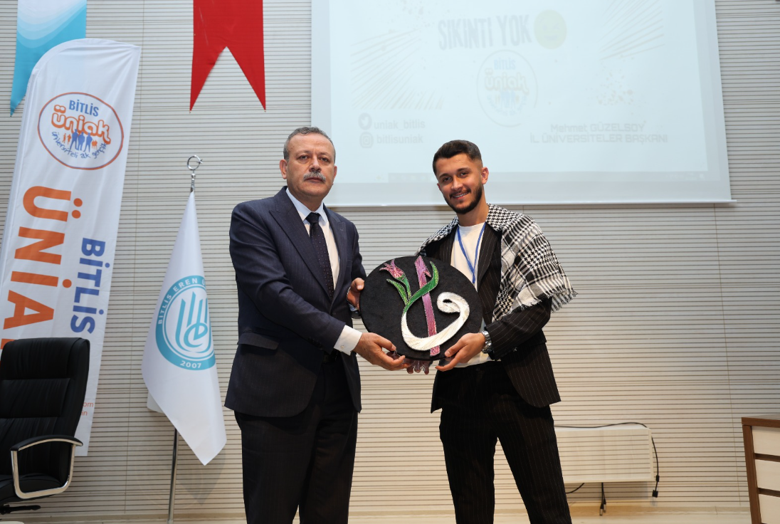Program sonunda, etkinliğe katılımı ve öğrencilere verdiği katkılardan dolayı Rektör Prof. Dr. Necmettin Elmastaş’a Üniversiteli Aktif Gençlik Kulübü tarafından plaket takdim edildi. Etkinlik, hatıra fotoğrafı çekimiyle sona erdi.