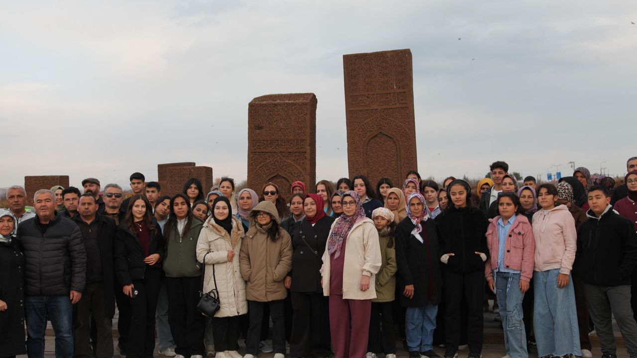 Öğrenciler, Ahlat’ta Harabaşehir Mağara Evleri, Emir Bayındır Kümbeti ve Selçuklu Meydan Mezarlığı gibi önemli tarihi alanları gezerek ilçenin kültürel mirasını yakından tanıma fırsatı buldu.