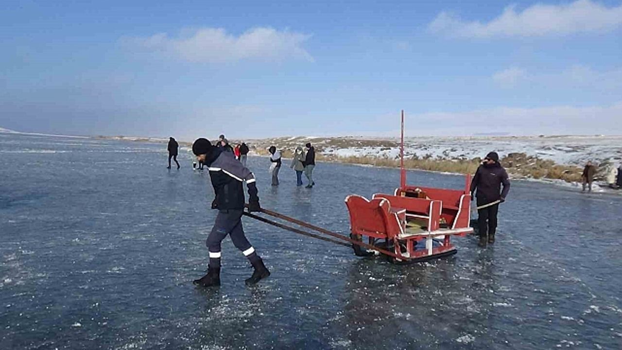 Türkiye'nin doğusunda yer alan ve yüzeyi kısmen buzla kaplanan Kars Çıldır Gölü'nde atlı kızak seferleri başladı. Cam gibi buz üzerinde dörtnala koşan atlar kızaklarda bulunan vatandaşlar unutulmaz anlar yaşıyor.