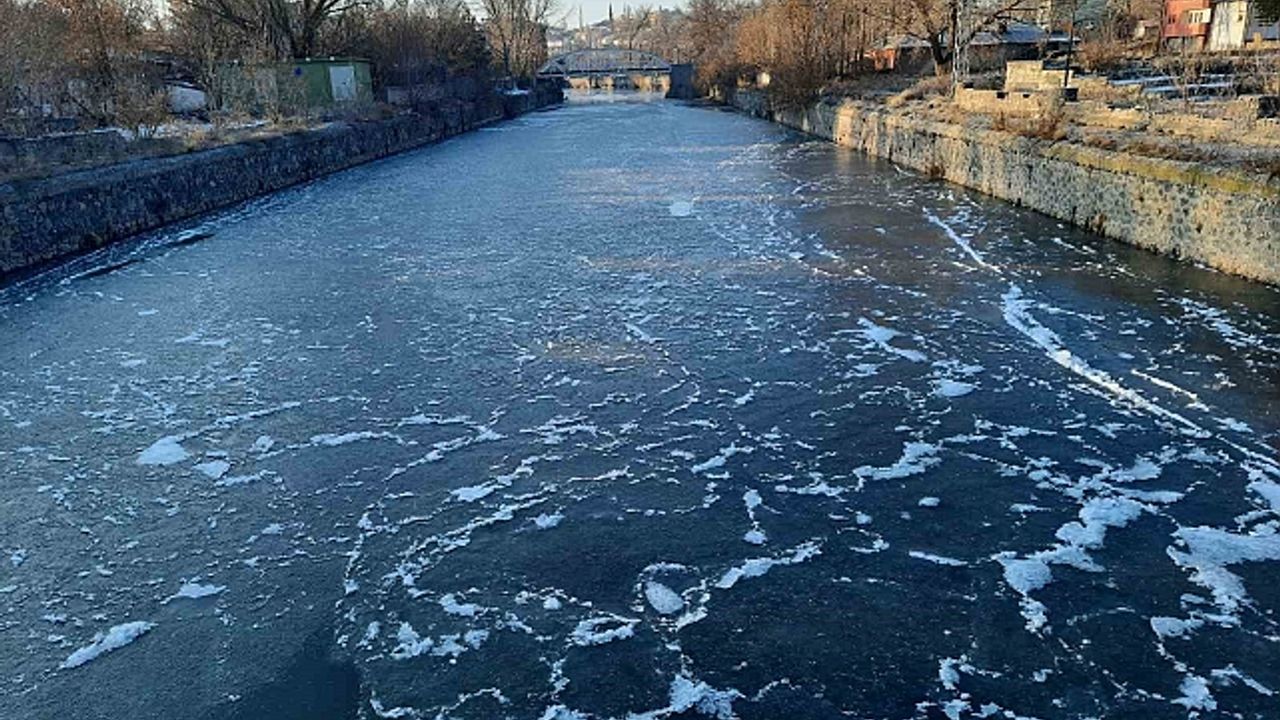 Kars Çayı'nın buz tuttuğunu ifade eden vatandaşlar, 'Sabah erken kalktım, Kars Çayı buz tutmuş, artık soğuklar başladı. Üşüyoruz, soğuktur' dediler.
