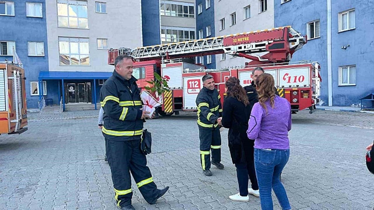 Kars'ta kalan kız öğrenciler, 'içeride mahsur kalan öğrencimiz' var diyerek ihbarda bulundukları itfaiye ekiplerine sürpriz yaparak İtfaiye Haftasını kutladılar.