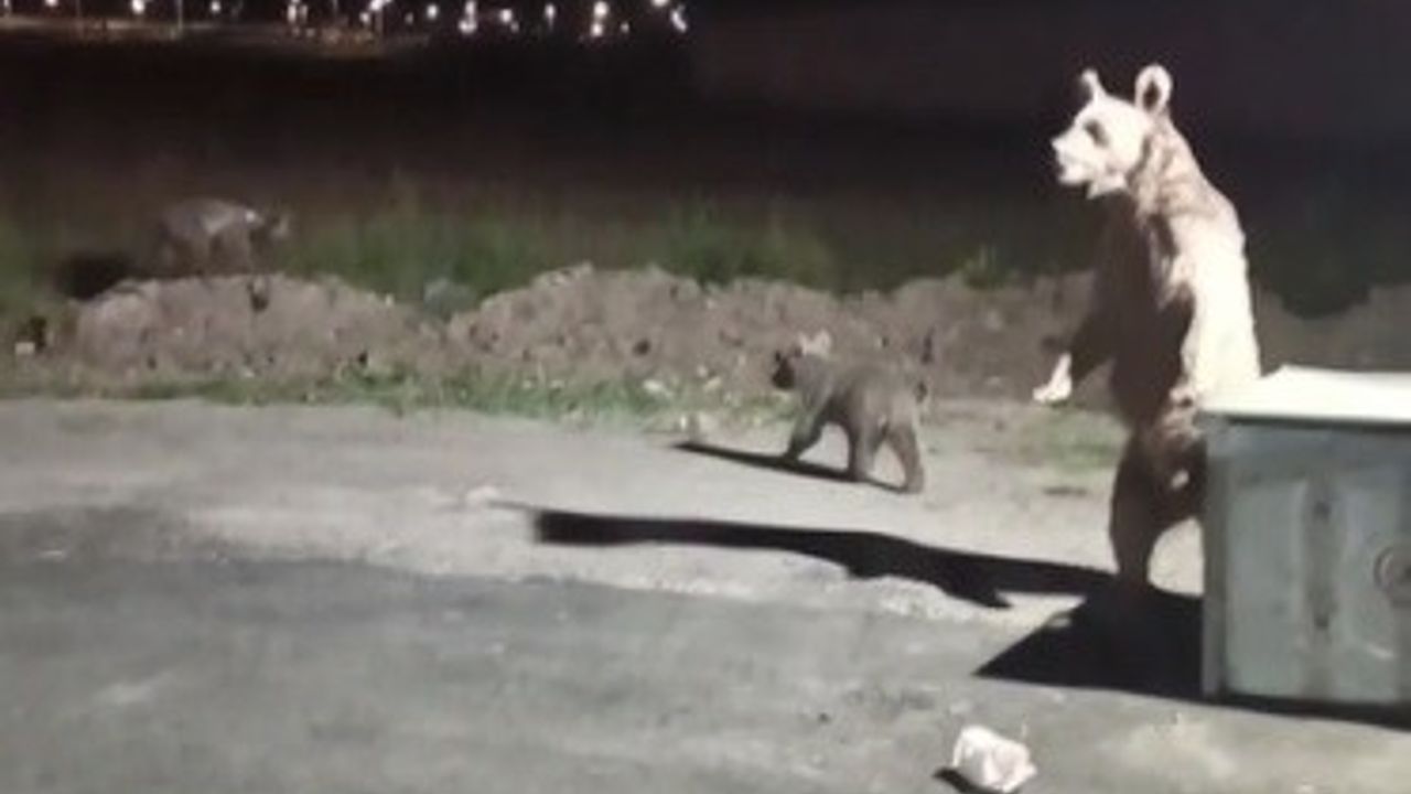 Cep telefonuyla kaydedilen görüntülerde, "Anne ayı ve yavrularının çöp konteynerında yiyecek araması var. Ayıların vatandaştan rahatsız olarak kaçmaları ile tekrar çöp konteynerının yanına gelen ayılar var. Ayrıca balkona çıkarak ayılar yaklaşan vatandaşa anne ayının bakarak yaklaşması ile vatandaşın balkondan içeriye can havliyle girmesi" yer alıyor.