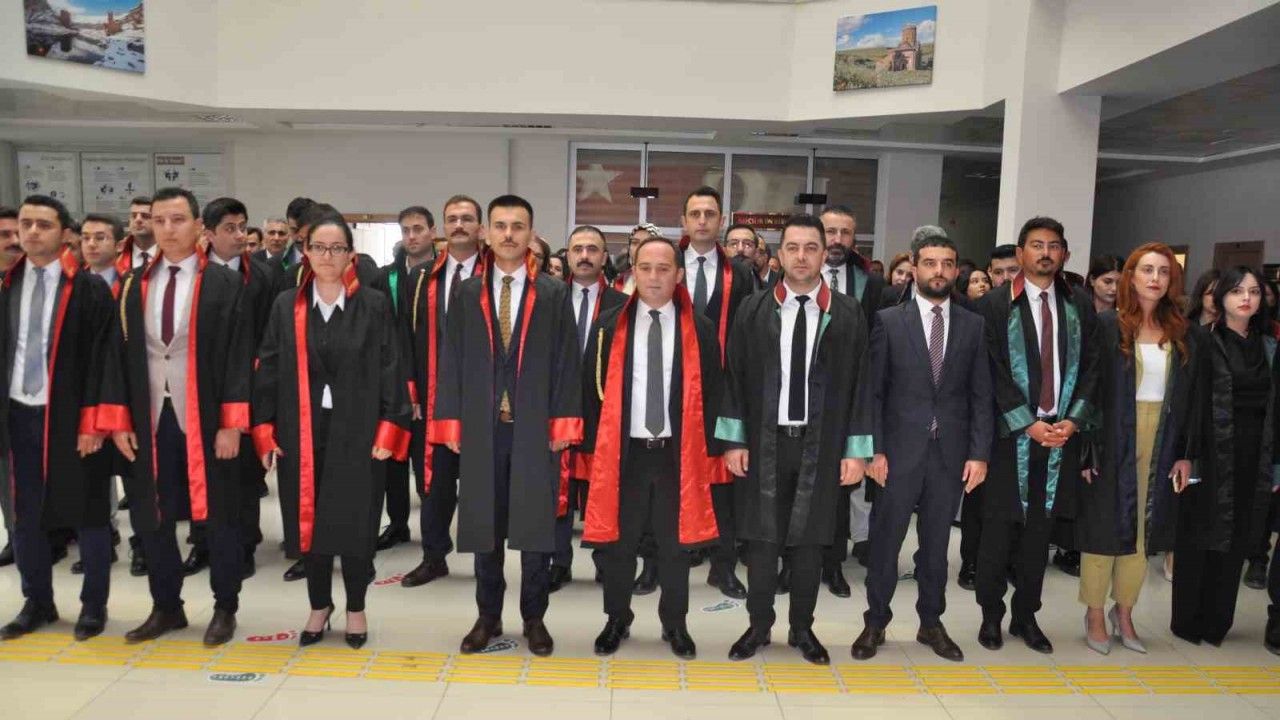 Kars Adliye Sarayı’nda düzenlenen tören, Saygı duruşu ve İstiklal Marşı’nın okunması ile başladı.