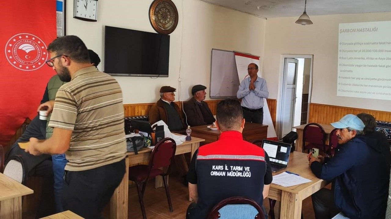 Kars’ta çiftçilere yönelik şarbon hastalığı konusunda bilgilendirme eğitimi düzenlendi.