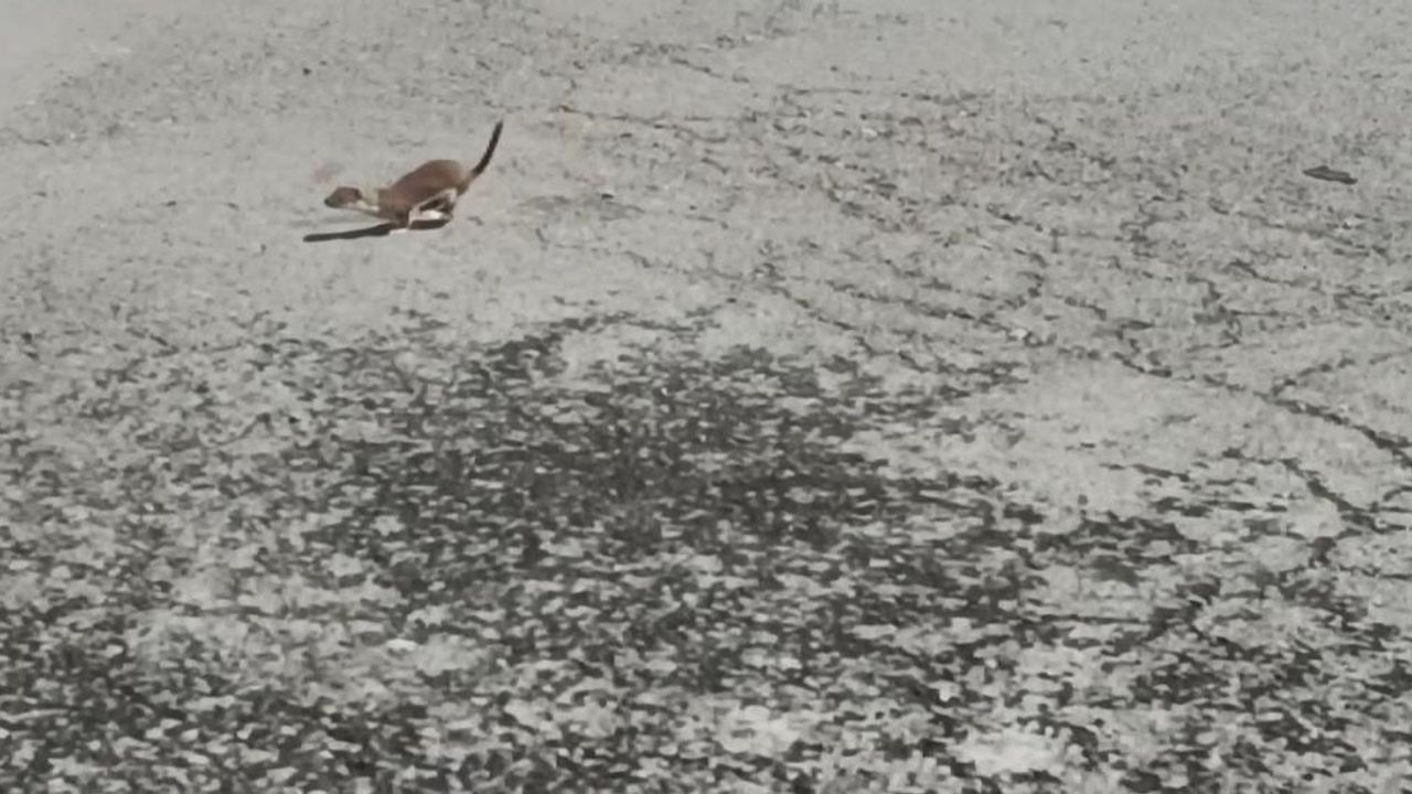 Kars merkeze Yusufpaşa Mahallesi’nde görüntülenmeleri çok zor olan gelincik, cadde üzerinde dolaşırken cep telefonuyla kaydedildi. Park halindeki araçların altına saklanan ve cadde sakinleşince ortaya çıkan gelincik, bir süre araçların altında gezdi, daha sonra caddeye çıktı, koşarak ortadan kayboldu.