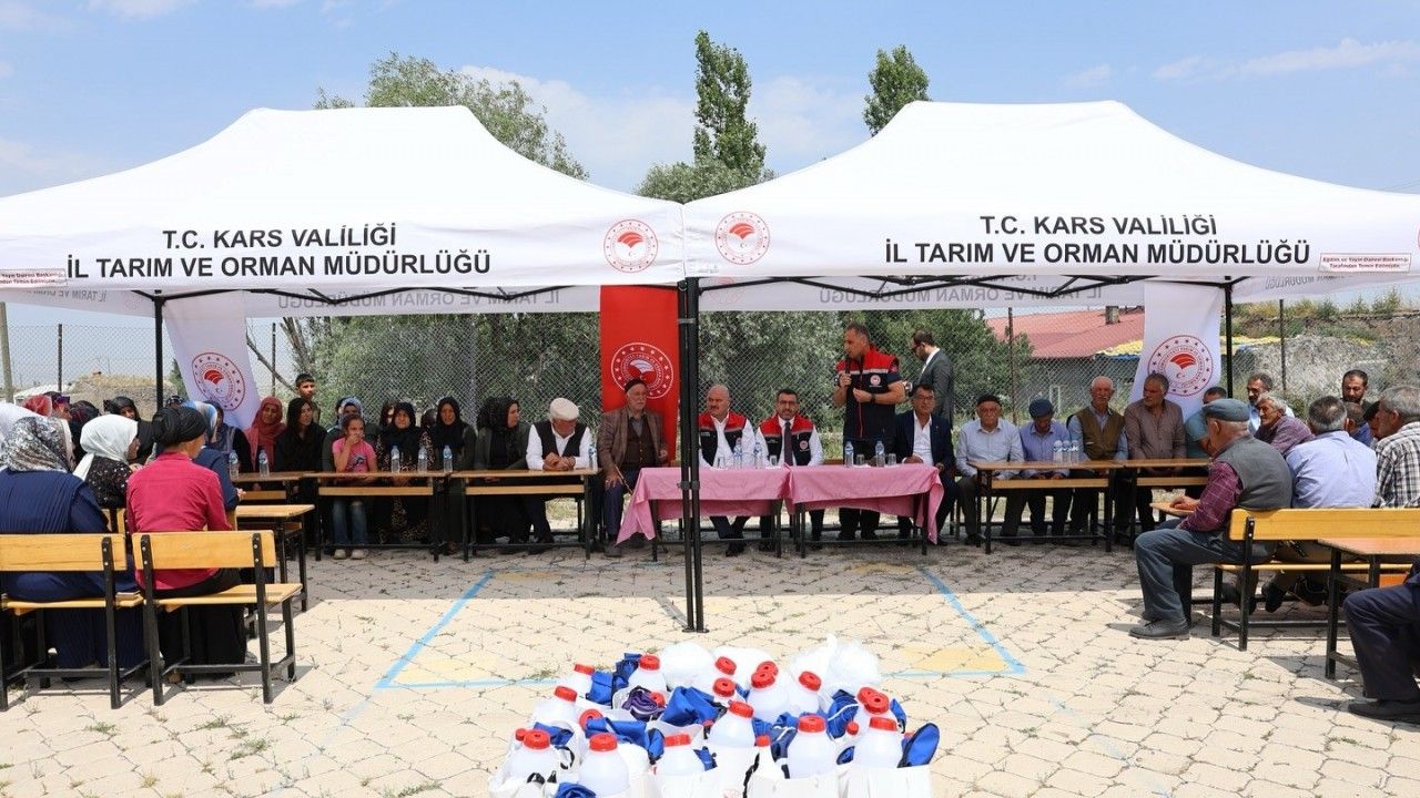 Tarım ve Orman Bakanlığı Eğitim ve Yayın Dairesi Başkanlığı tarafından finanse edilen "Süt Sağımı Hijyeni ve Sanitasyonu Eğitimi" sertifika töreni Ölçülü köyünde yapılan son eğitimle tamamlanırken, eğitime katılan kadınlara sertifikaları Milletvekili Adem Çalkın, Tarım ve Orman Müdürü Enver Aydın, AK Parti Kars İl Başkanı Muammer Sancar tarafından verildi.
