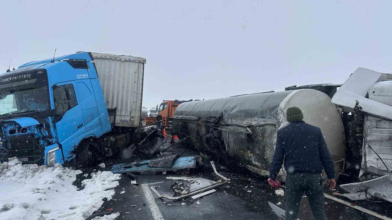 Kaza, Kars - Çıldır kara yolunda meydana geldi. Kars'tan Çıldır istikametine seyir halindeki zift yüklü tanker havanın kar yağışlı ve sisli olmasından dolayı yoldan çıkarak yan yattı. Karşı yönden gelen kereste yüklü tırın tankere çarpmasıyla meydana gelen zincirleme kazada sürücüler yaralandı.