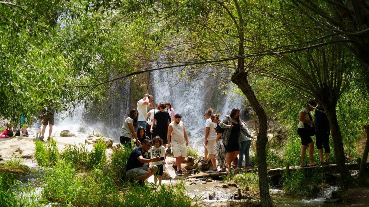 Kavurucu sıcakların yaşandığı bugünlerde şehrin stresinden ve gürültüsünden uzaklaşıp serin yerlerde vakit geçirmek isteyen ziyaretçiler, yeşil örtüsü ve doğal güzelliğiyle öne çıkan şelalede yoğunluk oluşturuyor.