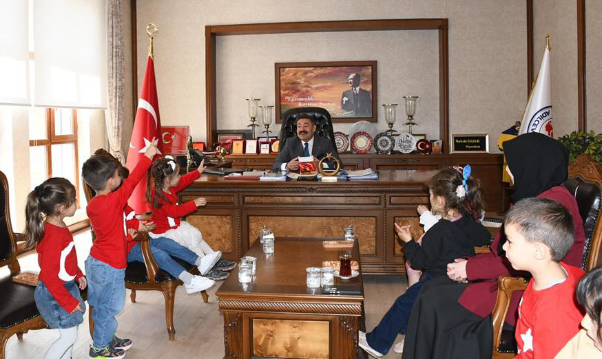 Renkli görüntülere sahne olan ziyarette, öğrenciler Kaymakam Özçelik tarafından büyük bir sevgi ve ilgiyle karşılandı. Ziyaret sırasında öğrencilerle tek tek ilgilenen ve onlarla sohbet eden Kaymakam Özçelik, 23 Nisan’ın tarihsel önemine ve çocuklar için taşıdığı anlamlara değinerek, tüm çocukların bayramını en samimi dilekleriyle kutladı. Kaymakam Özçelik ziyaretin sonunda çocuklara çeşitli hediyeler takdim ederek bayram sevinçlerine ortak oldu.