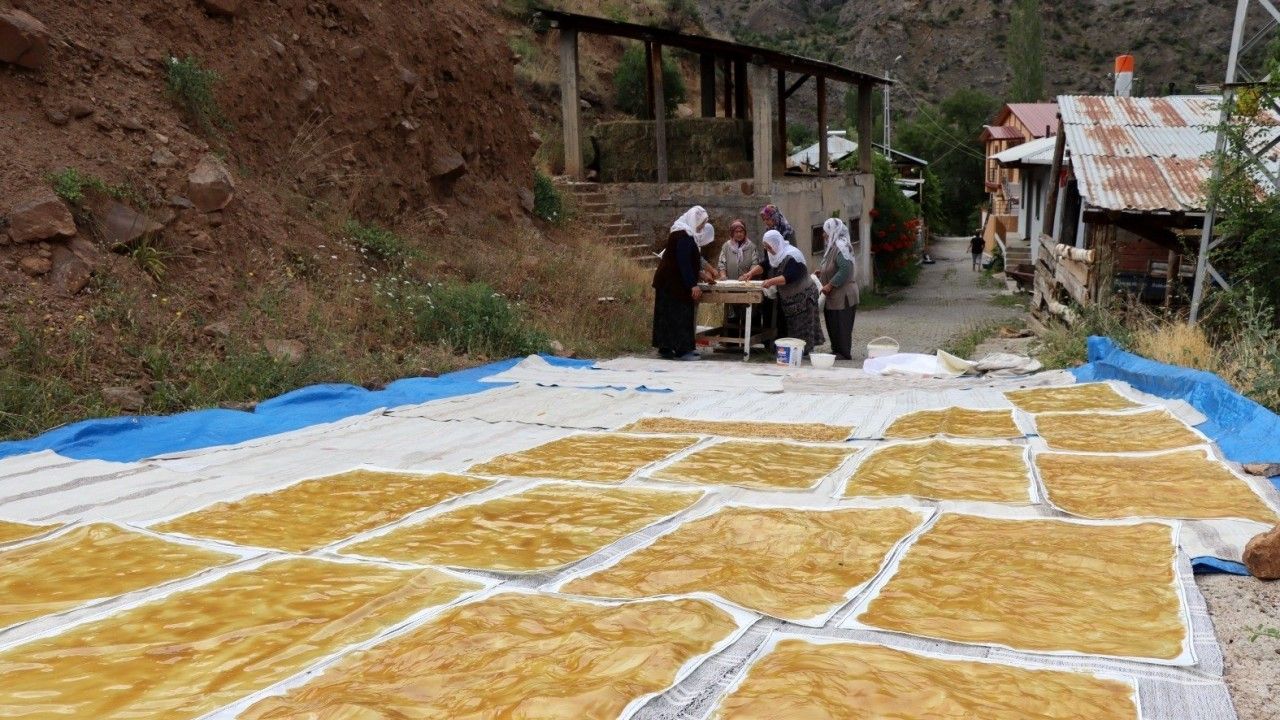 Erzincan’ın Kemaliye ilçesinde dut hasadının ardından geleneksel pestil yapımına başlandı.