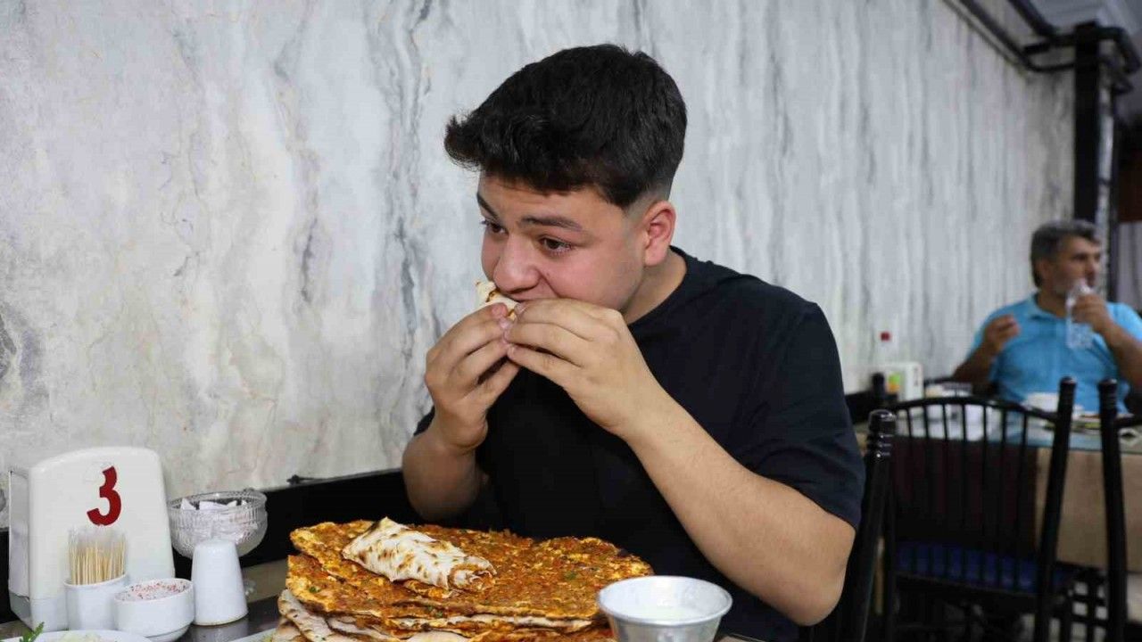 Elazığ’da yaşayan 70 kilo ağırlığındaki bir genç, iştahıyla dikkat çekiyor. 15 lahmacunu tek başına yiyebilirken yemek yarışlarında 110 kiloluk rakipleriyle mücadele ediyor.