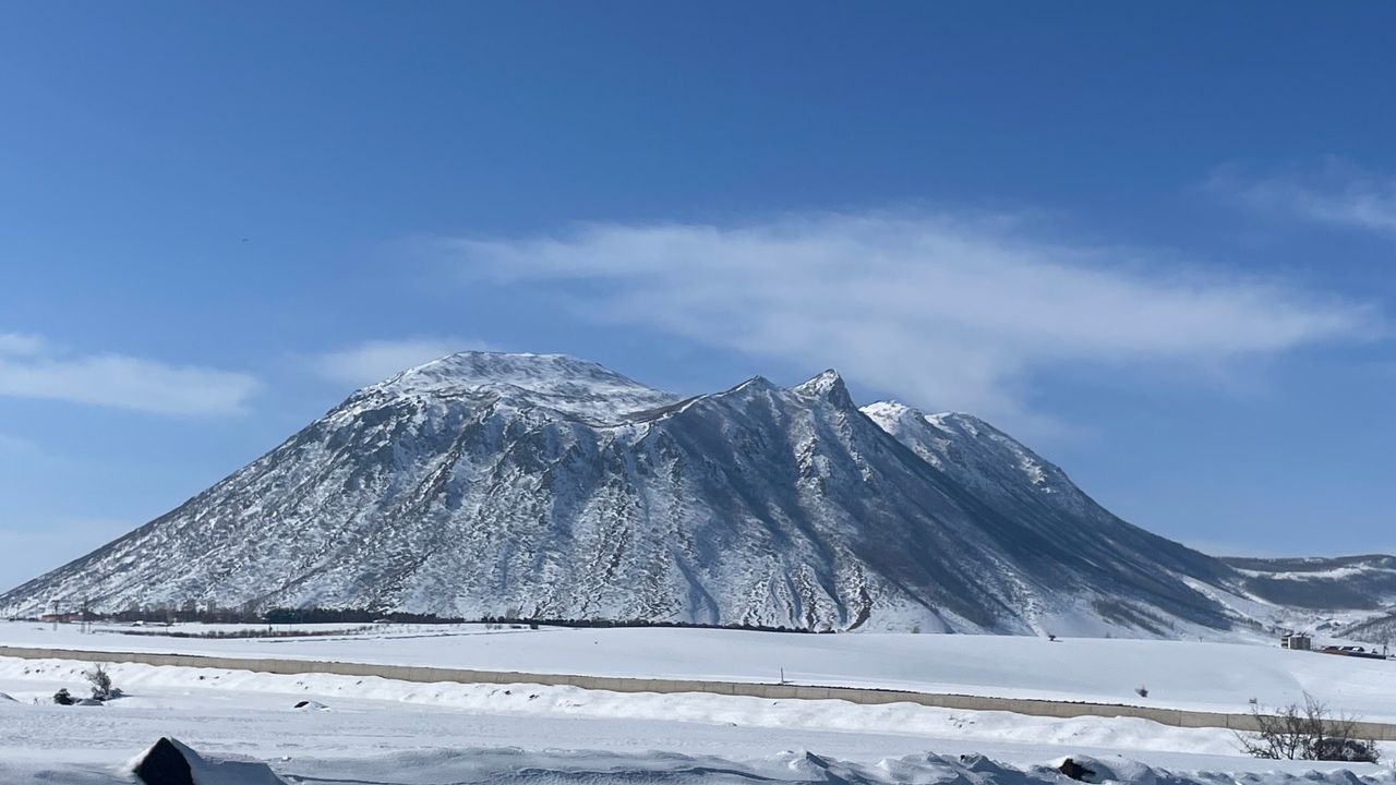 İlçe merkezinden bakıldığında Atatürk’ün yüz hatlarını andıran silüetiyle dikkati çeken dağ, etkili olan kar yağışının ardından beyaza büründü. Zirve ve eteklerinde oluşan kar örtüsü, silüeti daha belirgin hale getirirken ortaya kartpostallık görüntüler çıktı.