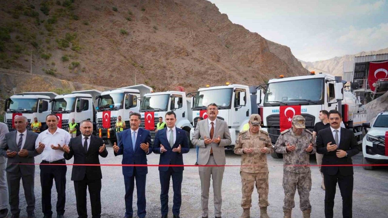 Hakkâri Valisi Ali Çelik, beraberindeki heyetle il özel idaresine kazandırılan 1 adet mobil konkasör ve 11 iş makinesi olmak üzere toplam 12 aracın teslim törenine katıldı.