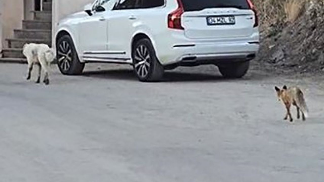 Hakkari’nin Dağgöl Mahallesi’nde sabahın ilk ışıklarında sokak köpeğinin peşine takılan ve onu adım adım takip eden tilki kameralara yansıdı.