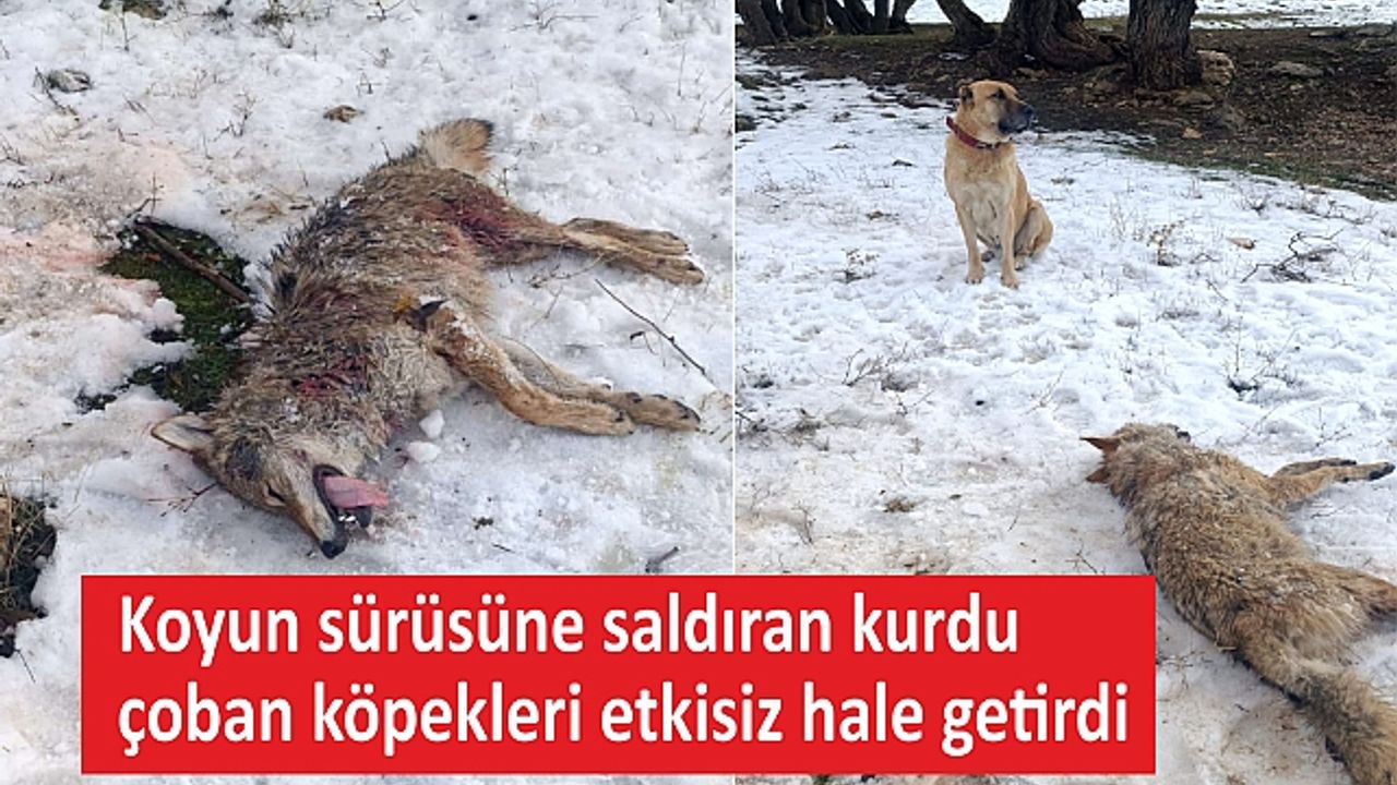Koyun sürüsüne saldıran kurdu çoban köpekleri etkisiz hale getirdi