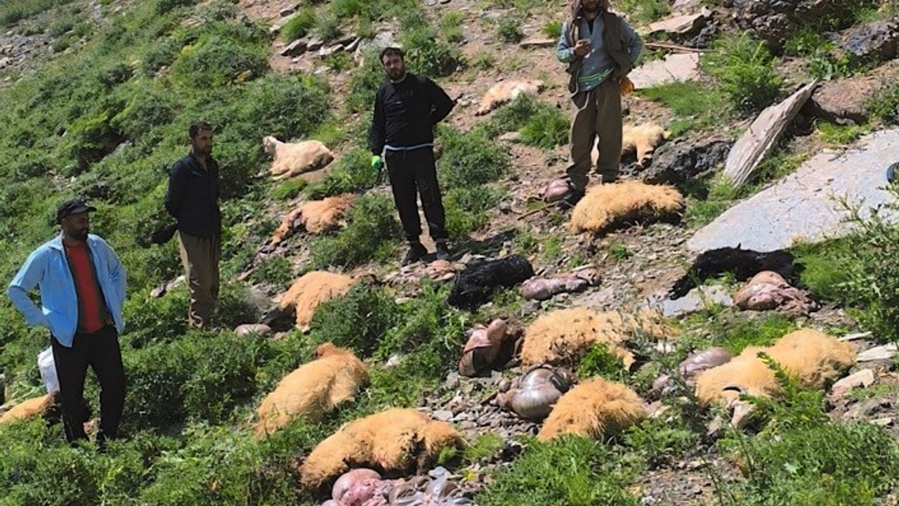 Hakkari’nin Yüksekova ilçesi kırsalında uçurumdan atlayan 20 koyundan 12’si telef oldu. Edinilen bilgiye göre olay, Yüksekova ilçesine bağlı Doski Vadisi’ndeki bir yaylada meydana geldi. Yaylada otlayan koyun sürüsünden bir koyunun uçurumdan atlamasıyla peşinden yaklaşık 20 koyun daha atladı.