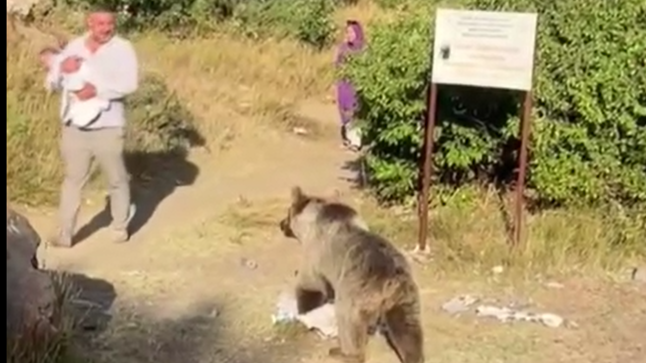 Bitlis'in Ahlat, Tatvan ve Güroymak ilçe sınırları içerisinde bulunan Nemrut Krater Gölü'nde geziye çıkan bir ailenin üzerine ayı saldırdı. Kucağında bebek bulunan vatandaşa yönelen saldırı anları cep telefonuna yansıdı. Olayda büyük panik yaşanırken, ailenin sağlık durumunun iyi olduğu öğrenildi. O anlar bölgede bulunan başka bir vatandaş tarafından cep telefonuyla saniye saniye kaydedildi.