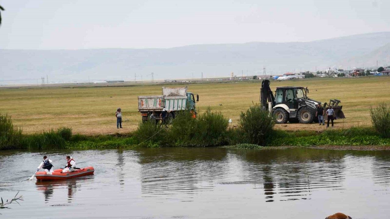 AFAD arama ve kurtarma ekibi, bot yardımıyla boğularak ölen hayvanı sudan çıkarmak için çalışma başlattı.