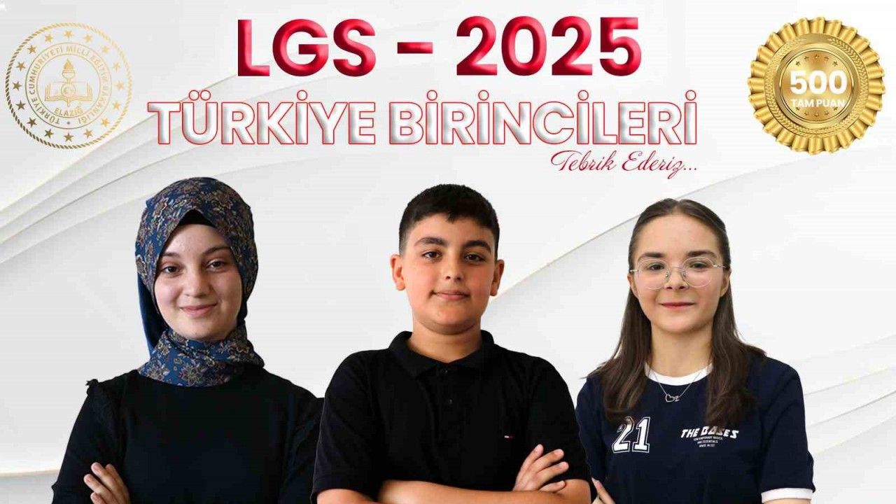 Elazığ’da 3 öğrenci LGS’de 500 tam puan alarak Türkiye birincisi oldu.