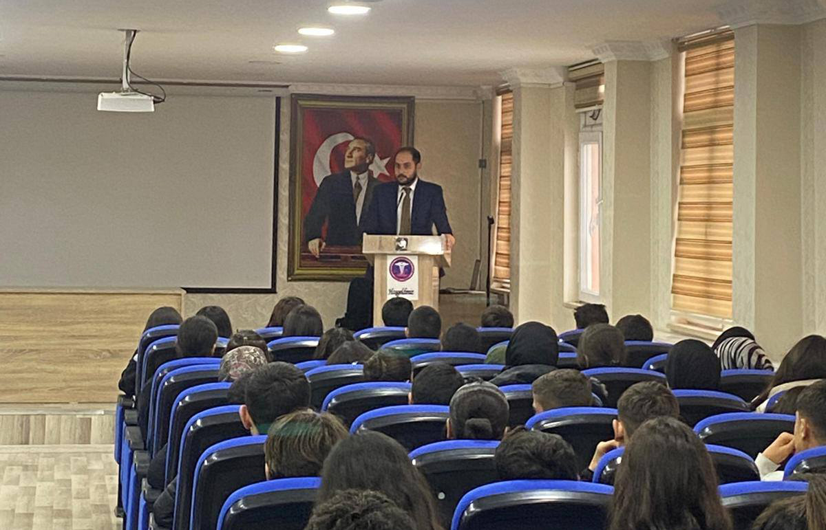 Tatvan Atatürk Anadolu Lisesi'nde düzenlenen konferans, okul idaresi ve öğrencilerin yoğun katılımıyla gerçekleşti.