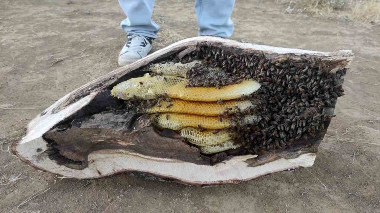Elazığ’ın Arıcak ilçesinde esnaflardan Mehmet Ali Çağlar, mağara ve ağaç kovuğundan kilo kilo bal çıkardı.