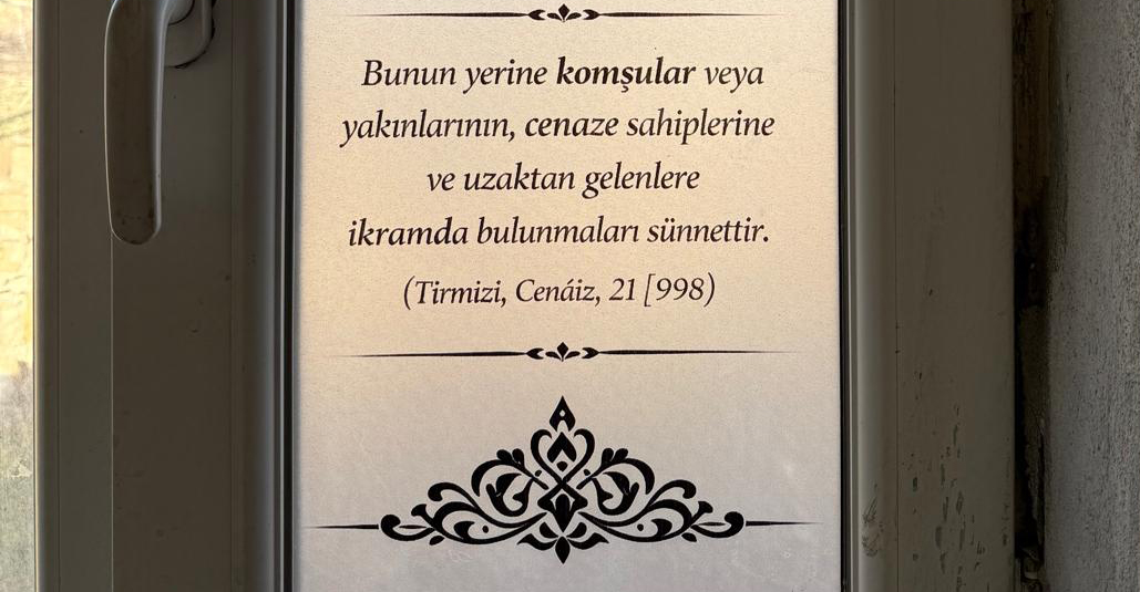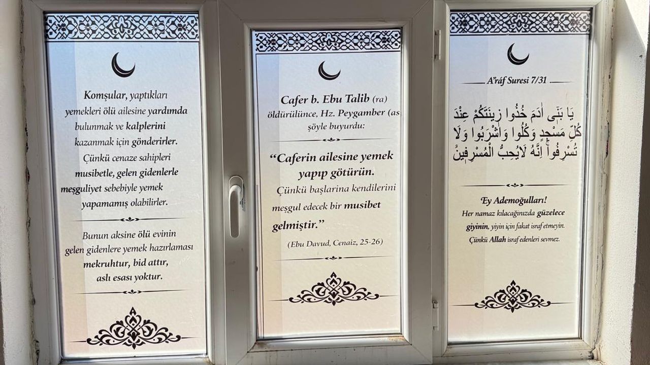Bitlis’in Ahlat ilçesine bağlı Tunus Mahallesi’nde mahalle sakinleri, cenaze sahiplerinin taziye yemekleri nedeniyle ekonomik olarak zor durumda kalmasını önlemek amacıyla anlamlı bir uygulamaya imza attı. Mahalle halkı, taziye evinin pencere camlarına taziye yemeklerinin usulüne ilişkin ayet ve hadislerin yer aldığı bilgilendirici metinler astı.