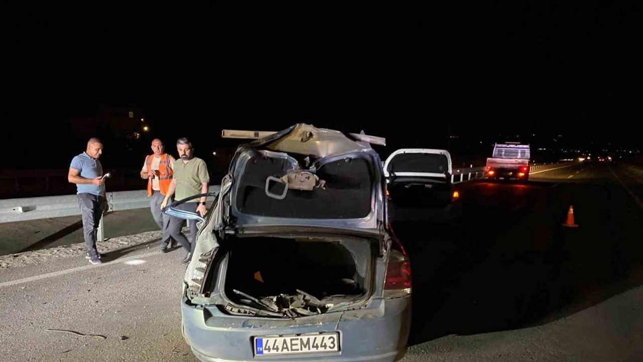 Edinilen bilgilere göre, Malatya-Ankara karayolu Yeşilyurt Kuyulu mevkiinde saat 20.35’te meydana gelen kazada G.Ö. (29) idaresindeki 44 AEM 443 plakalı otomobil, sürücüsünün kontrolünden çıkarak bariyerlere çarptı. Kazada sürücü ile araçtaki B.N.Ö. (17), S.Ö. (29), D.Ö. (58) ve Ö.Y. (5) yaralandı.