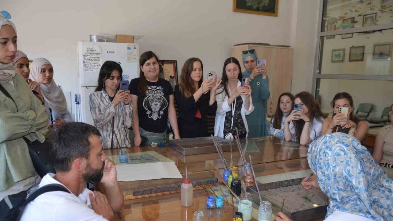 Malatya Turgut Özal Üniversitesi’nin rehberliğinde Malatya’da 20 gün kalacak olan misafirler, Büyükşehir Belediyesi Sanat Merkezi’ni ziyaret ettiler. Sanat Merkezi’nde Ebru Workshop etkinliğine katılan misafirler, keyifli vakit geçirdiler. Misafirler daha sonra, 30 farklı branşta 58 kursun düzenlendiği, yılın her döneminde her yaştan vatandaşlara hizmet vererek sanatsal öğretim ve üretimi sağlayan Sanat Merkezini gezdiler.