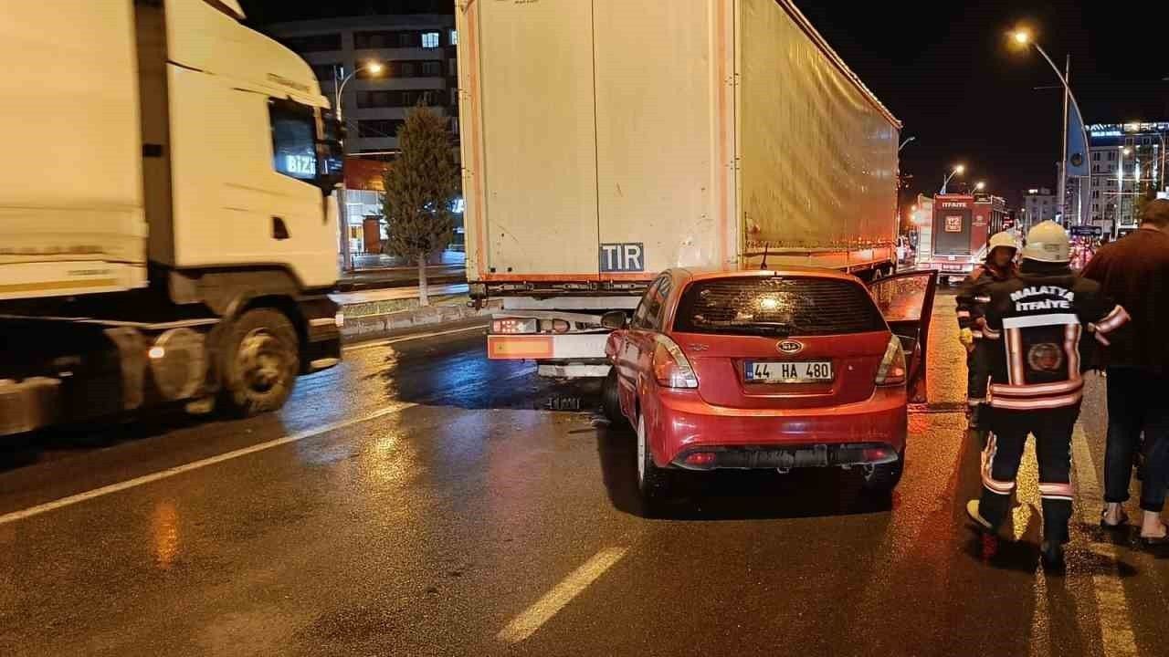 Kaza, saat 22.00 sıralarında Malatya-Ankara karayolu Turgut Özal Bulvarı üzerinde meydana geldi. Edinilen bilgilere göre, A.Y. idaresindeki 44 HA 480 plakalı Kia marka otomobil ile aynı yöne seyreden A.D. yönetimindeki 06 CIA 919 plakalı Mercedes marka tır çarpıştı. Kazada otomobil sürücü ile araçta yolcu olarak bulunan H.Y. ve Z.N.Y. yaralandı. İhbar üzerine olay yerine polis, sağlık ile itfaiye ekipleri sevk edildi. Yaralılar Malatya Eğitim ve Araştırma Hastanesi’ne kaldırıldı.