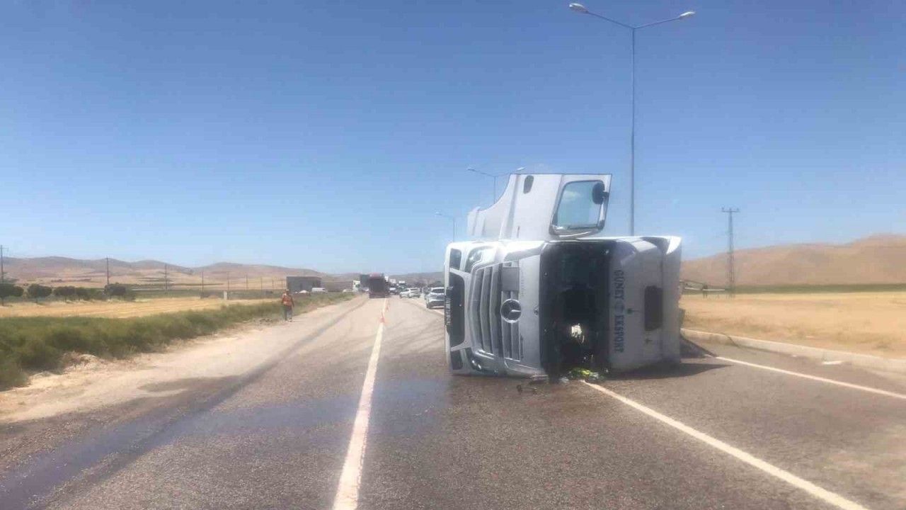 Kaza nedeniyle Sivas yolu bir süre trafiğe kapatılırken, çekici tankerin vinç yardımıyla kaldırılmasının ardından yol tekrar ulaşıma açıldı. Kazayla ilgili inceleme başlatıldı.