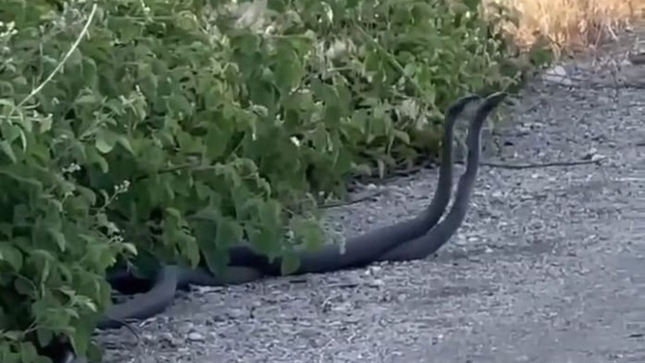 Malatya’nın Doğanşehir ilçesinde, yol kenarında çiftleşme dansı yapan iki yılan vatandaşın cep telefonu kamerasıyla görüntülendi. Doğanşehir ilçesine bağlı Erkenek Mahallesi’nde, Malatya-Adıyaman Karayolu kenarında karşılaşılan olayda, yılanların çiftleşme dansı cep telefonu kamerasıyla kaydedildi. Görüntülerde yılanların birbirine dolanarak dans eder gibi hareket ettiği anlar dikkat çekti. Kısa süren ilginç anlar, yılanların gözden kaybolmasıyla sona erdi.