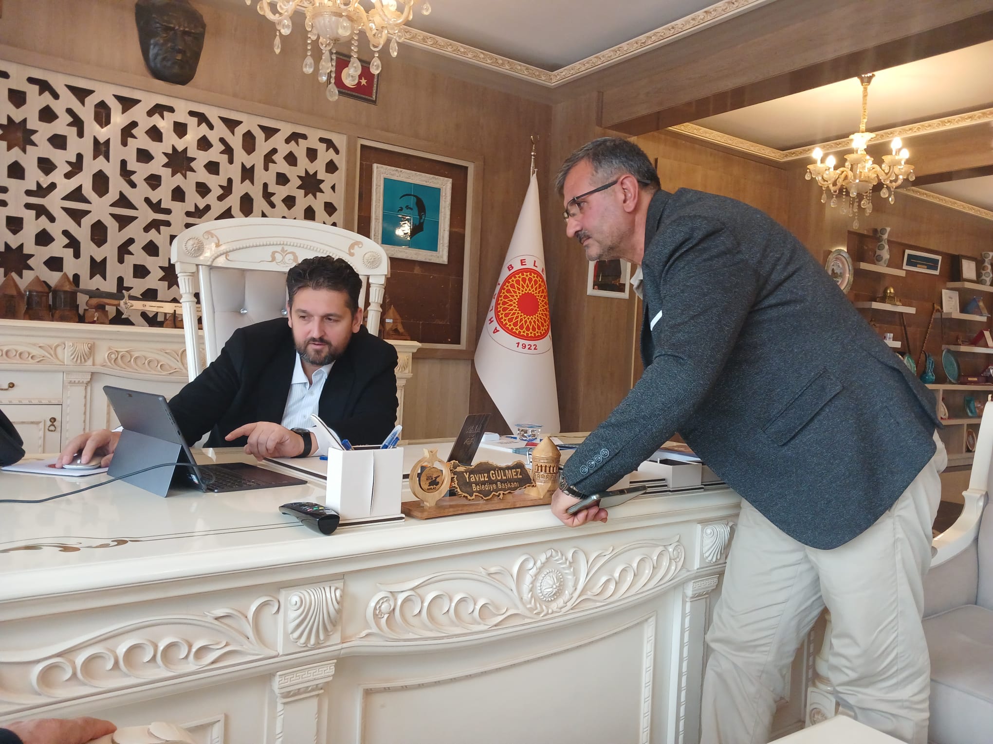 Ziyarette Dernek Başkanı Aslan, Belediye Başkanı Gülmez ile bir süre sohbet ederek derneğin yürüttüğü çalışmalar ve hayata geçirilmesi planlanan projeler hakkında bilgi verdi. Karşılıklı görüş alışverişinin yapıldığı ziyarette, Ahlat’a yönelik sosyal ve kültürel çalışmalar da ele alındı.