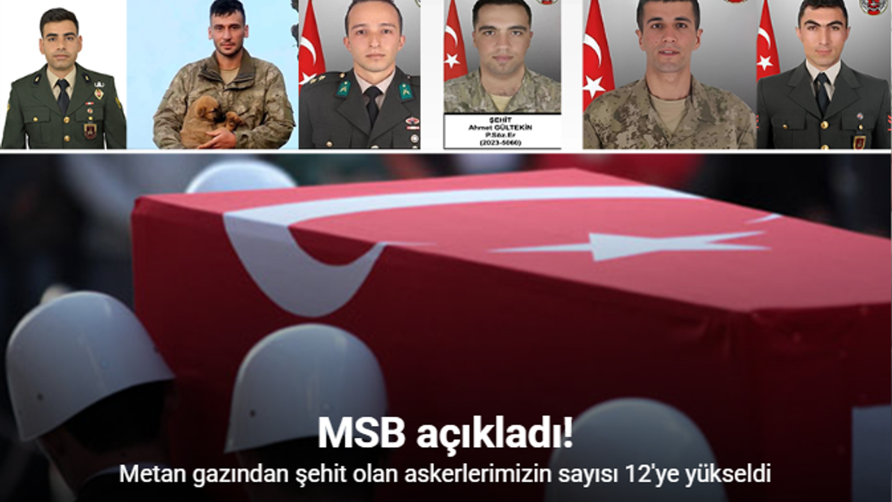 Milli Savunma Bakanlığı (MSB) "Metan gazından etkilenen dört kahraman silah arkadaşımız daha şehit olmuş, şehit olan personel sayısı on ikiye yükselmiştir" açıklamasında bulundu.