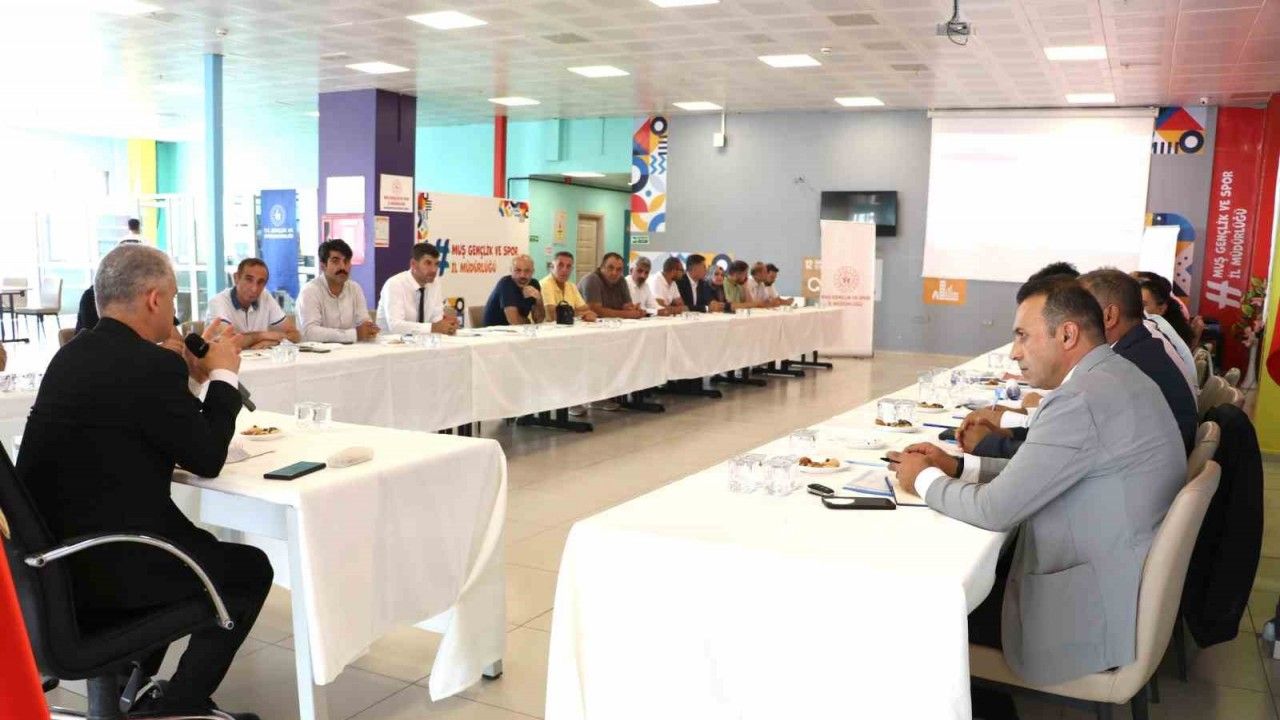 Muş Gençlik ve Spor İl Müdürü Yusuf Kılıç, gençlerin spor ve kültürle buluşması için kentteki tesislerin en verimli şekilde kullanılması için birim müdürleri ile toplantı yaptı.
