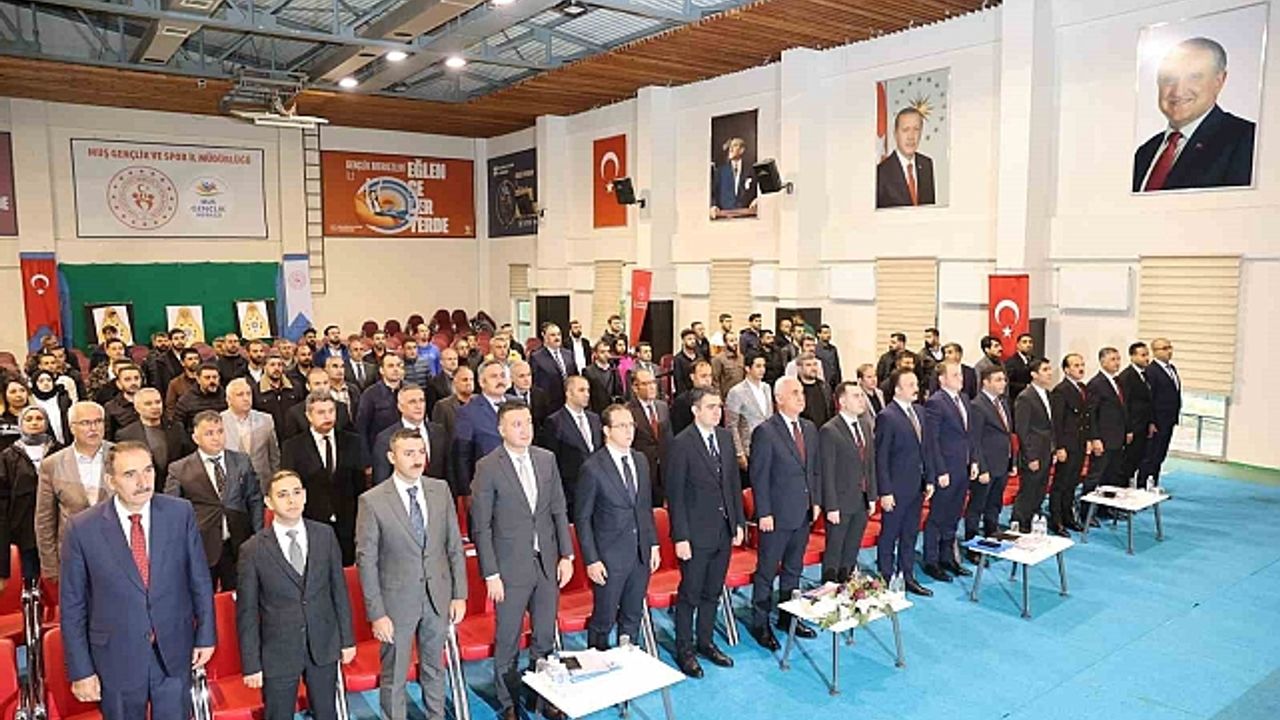 Muş Valiliği, Gençlik ve Spor İl Müdürlüğü ve Milli Eğitim Müdürlüğü iş birliğiyle 'Hem Sporda Hem Okulda Başarı' mottosuyla Gençlik Merkezi konferans salonunda düzenlenen toplantı, saygı duruşunda bulunulması ve İstiklal Marşı'nın okunmasıyla başladı.
