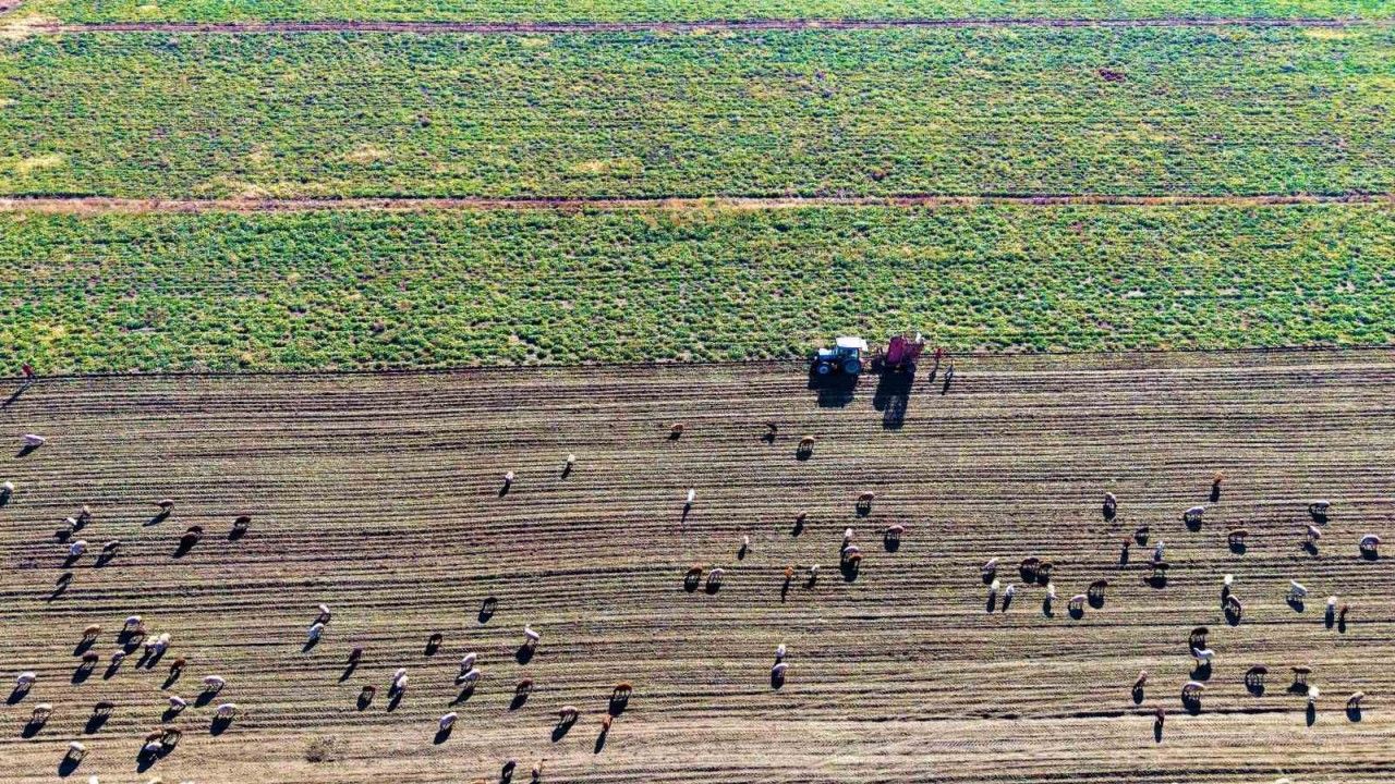 Sabahın ilk ışıklarıyla birlikte tarlalara inen çiftçiler, emeğin ve alın terinin karşılığını almak için yoğun mesai harcıyor. Yağmura ve soğuğa aldırmadan çalışmalarını sürdüren üreticiler, gün boyunca pancar sökümü, yükleme ve taşıma işlemleriyle uğraşırken, zorlu hasat süreci adeta bir dayanışma örneğine dönüşüyor. Geniş pancar tarlalarındaki hummalı çalışma dron ile havadan görüntülendi.