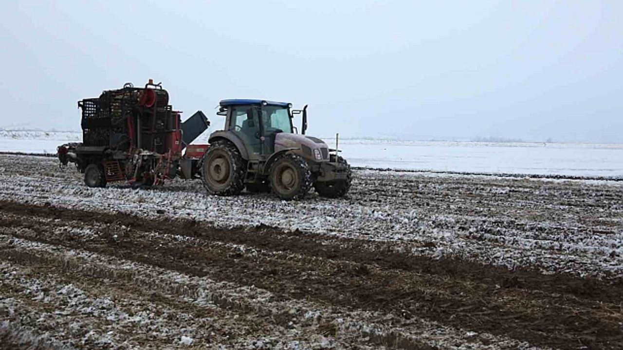 3 milyon 570 bin dekar tarım arazisi ile Türkiye'nin üçüncü ekilebilir alanına sahip olan Muş Ovası'nda pancar hasadına kar altında devam ediliyor. Bin 711 üreticinin yaklaşık 85 bin dönüm alanda ekimini yaptığı şeker pancarının sökümü ekim ayında başlamıştı. Kentte geçmiş yıllara göre erken yağan kar nedeniyle hazırlıksız yakalanan çiftçilerin pancarı tarlada kaldı. Kar yağışı tarım arazilerini beyaza bürürken, pancarı kar altında kalan çiftçilerin mesaisini artırdı. Tarlada yaktıkları ateşin başında ısınan çiftçiler, gece gündüz mesai yaparak pancar sökümünü sürdürüyor. Söküm esnasında çamura saplanan kamyon ve traktörlerin yardımına ise komşu tarladaki traktörler yetişiyor. Çiftçiler, sökümünü yaptıkları pancarları traktör ve kamyonlarla Muş Şeker Fabrikasına taşıyor.