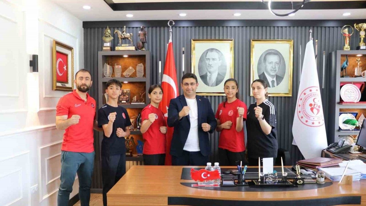 Karadağ’da düzenlenecek Balkan Çocuklar Karate Şampiyonasına katılacak olan Muşlu sporcu ve antrenörler, turnuva öncesi Muş Gençlik ve Spor İl Müdürü Mehmet Arif Taşdemir’i ziyaret etti.