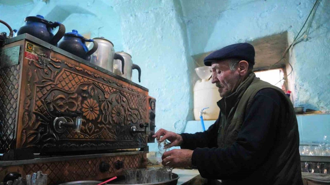 Muş’ta 350 yıllık tarihi çay ocağında tam 55 yıldır çay demleyen Burhan İneci, mesleğini ilk günkü heyecanla sürdürüyor.