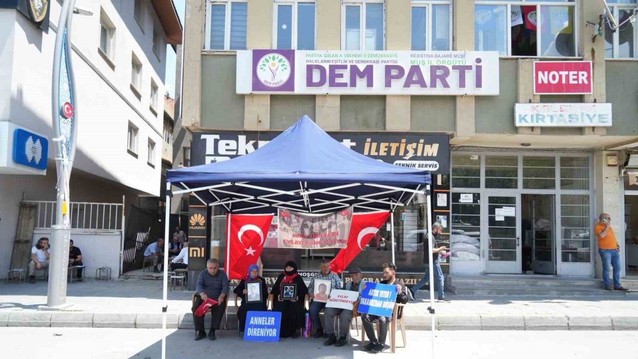Muş’ta çocukları terör örgütü PKK tarafından dağa kaçırılan aileler, DEM Parti İl Başkanlığı önünde gerçekleştirdikleri evlat nöbetini kararlılıkla sürdürüyor. Aileler, terörsüz bir Türkiye yolunda atılan adımlardan umutlu olduklarını belirterek, çocuklarına "teslim ol" çağrısında bulundu.